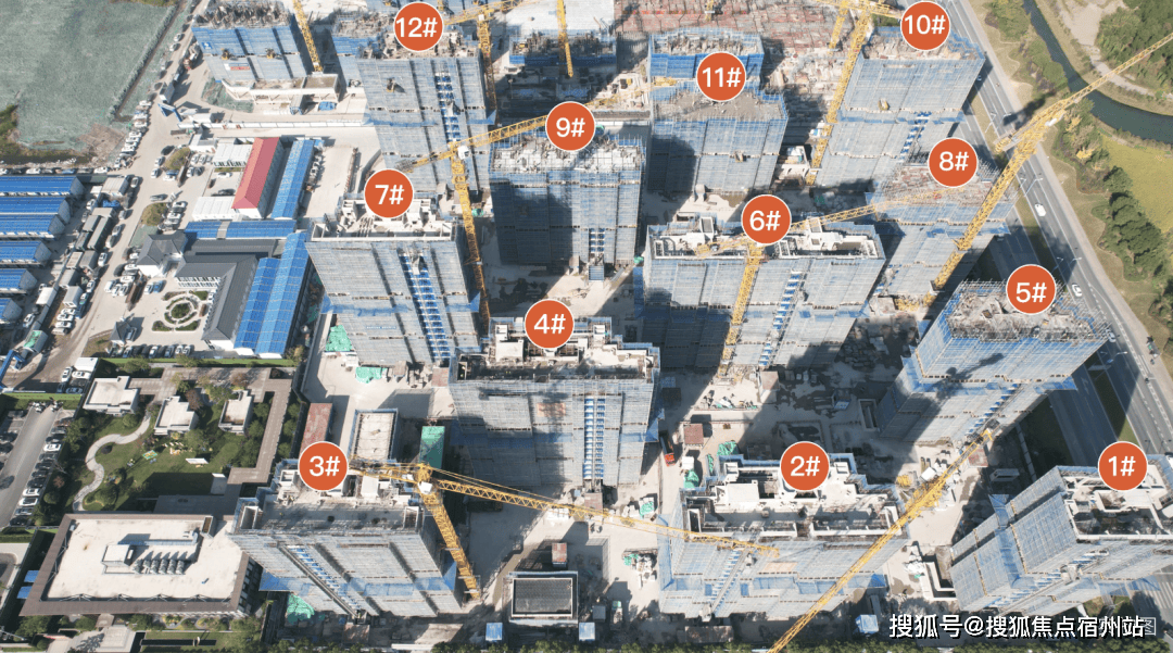 目前1#、2#、3#、4#、6#、7#布局均已完成,5# 15层墙柱施工中,16层梁板施工中;8# 13层墙柱施工中;9# 12层柱子合模;10# 屋面层施工中;11# 9层顶板施工中;12#花架浇建!