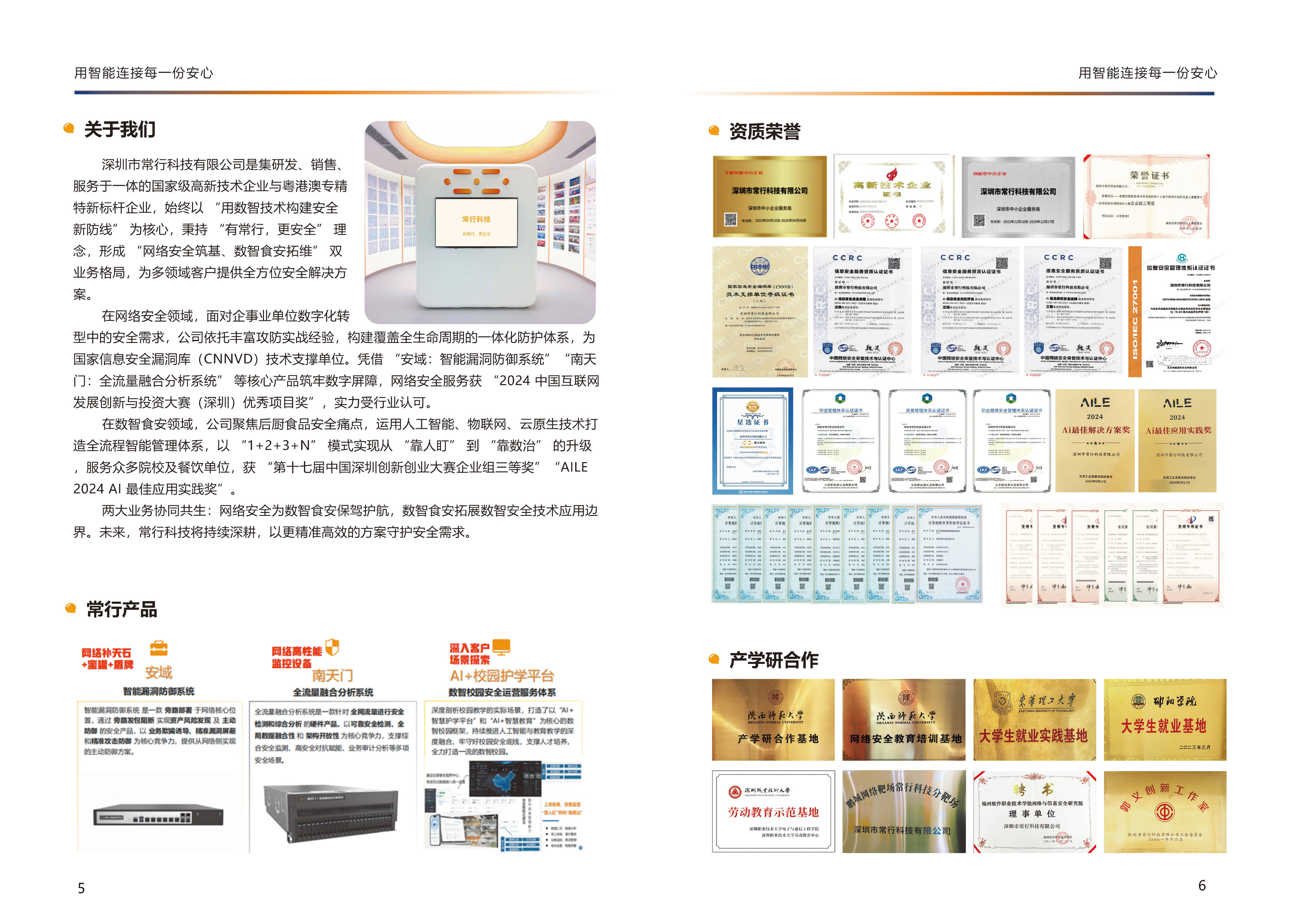 常行科技创立于2014年7月,是一家集研发、发卖、办事于一体的高新手艺企业、粤港澳专精特新标杆企业TOP100,2024粤港澳大湾区科立异锐企业TOP100,国度消息平安缝隙库手艺支持单元,是收集平安运营办事PTM理论的初创者,是数智物联食物平安范畴的先行者;同时,是深圳数据买卖所数据商、办事商、中关村华安环节消息根本设备平安联盟的理事单元。