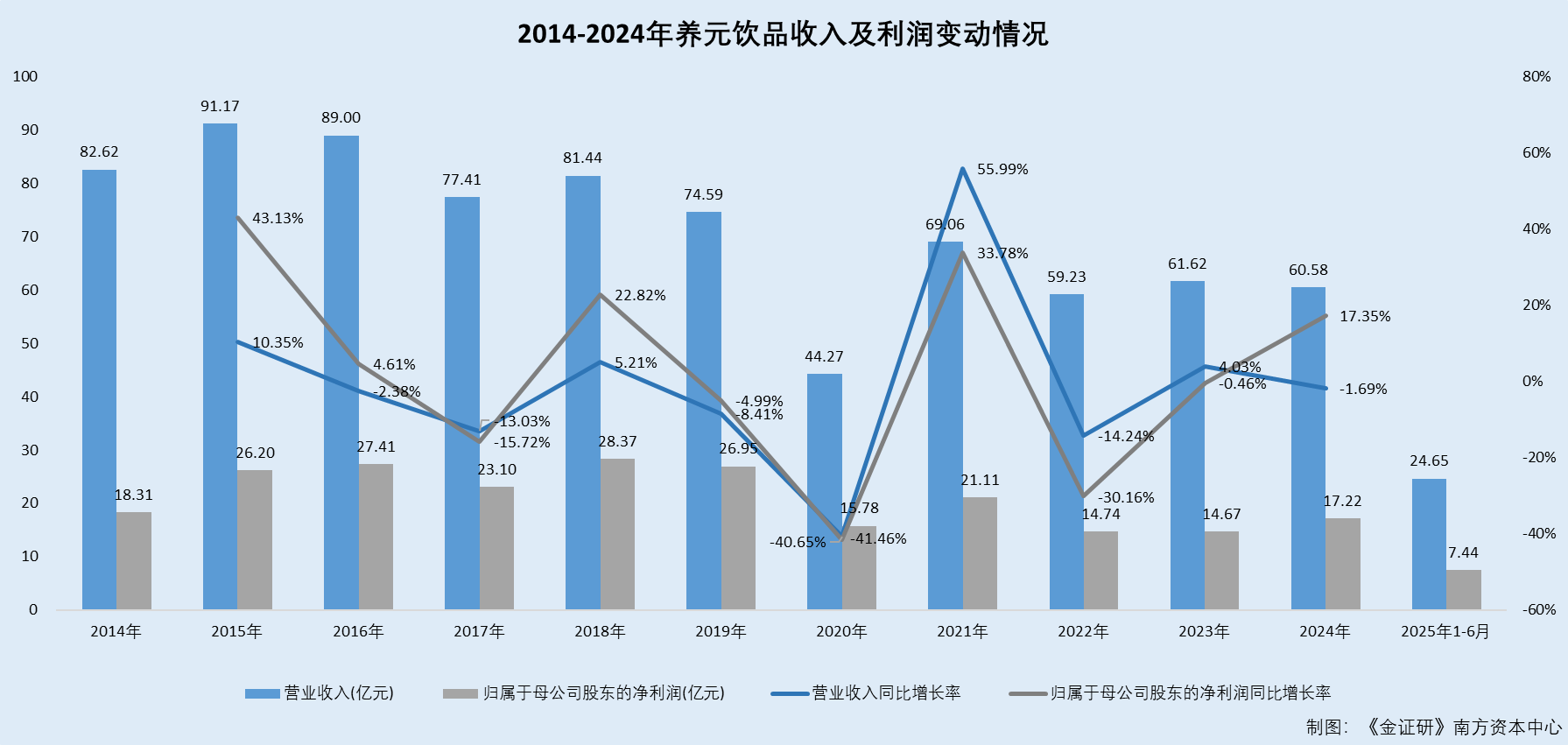 扫描或点击关心中金正在线年上半年度,养元智汇饮品股份无限公司(以下简称“养元饮品”)实现营收24。65亿元,较上年同期下降16。19%;实现归母净利润7。44亿元,较上年同期下降27。76%。此外,2025年8月23日,正在“提质增效沉报答”步履方案的评估演讲中,养元饮品称为应对渠道分化趋向,将制定差同化渠道策略,巩固“畅通、商超”等保守渠道根基盘,深挖电商渠道增量,全方位结构头部平台,聚焦区域市场,按优先级拓展社群、扣头、立即零售等新兴渠道,抢占区域市场份额。而产物结构方面,养元饮品曾暗示,其环绕“六个核桃”品牌打制了针对分歧春秋、分歧消费群体、分歧消费场景的多规格的产物矩阵。而养元饮品官网至今披露的产物为“六个核桃系列”、“六个核桃2430系列”核桃乳以及动物奶系列。多年来,养元饮品收入次要来自卑单品核桃乳。此中,核桃乳贡献超九成收入,截至2024年收入占比不脚九成,且核桃乳发卖收入较十年前已缩水超三成。自上市以来,养元饮品先后推出的新产物养元红枸杞型饮料、核桃咖啡乳、动物酸奶等,难构成收入规模或接踵“折戟”。正在此布景下,十年间,养元饮品的停业收入规模呈下滑趋向,2024年已不及上市申报的程度。另一面,养元饮品结构电商渠道十年收入规模却仍不脚2亿元,而保守经销渠道收入由90亿元萎缩至不脚60亿元,且华南等新市场拓展或“停畅不前”。除此之外,养元饮品近十一年间发卖费用合计高达98。87亿元,而研发投入累计仅3。21亿元。且2018-2024岁暮,养元饮品研发人员中超七成为大专及以下学历,超三成系高中及以下学历。手艺方面,全核桃CET冷萃手艺系养元饮品继“5。3。28”出产工艺后,又一里程碑式的手艺冲破,而2019年起养元饮品收入增速坐“过山车”,且曾四度负增加。正在快消操行业,企业往往需要依托打制爆款单品进行市场冲破。2018年,养元饮品正在所上市,其收入次要来自卑单品核桃乳。养元饮品核桃乳收入规模呈现下滑,养元饮品2024年核桃乳发卖收入相较于2015年缩水38。21%。落井下石的是,上市以来养元饮品先后推出多款新品类产物谋求第二增加曲线,或接踵“折戟”。据签订日期为2018年1月29日的招股仿单(以下简称“签订于2018年1月29日的招股书”),2014-2016年,养元饮品的停业收入别离为82。62亿元、91。17亿元、89亿元,同期净利润别离为18。31亿元、26。2亿元、27。41亿元。2015-2016年,养元饮品的停业收入别离同比增加10。35%、-2。38%,净利润别离同比增加43。13%、4。61%。1。2 多年来核桃乳贡献超九成收入而2024年收入占比不脚九成,且核桃乳发卖收入较十年前已缩水超三成