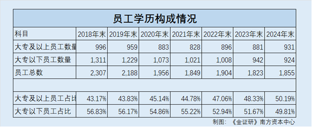 若以发卖费用中职工薪酬及期末发卖人员数量测算,2017-2024年,养元饮品发卖人员的平均薪酬别离或为12。85万元/年、16。12万元/年、20。47万元/年、20。28万元/年、25。25万元/年、23。62万元/年、24。54万元/年、23。01万元/年。若以前述数据测算,2017-2024年,养元饮品研发人员的平均薪酬别离或为4。47万元/年、4。76万元/年、6。18万元/年、6万元/年、7。46万元/年、6。67万元/年、10。01万元/年、8。12万元/年。对比不难发觉,养元饮品的发卖人员人均薪酬或远高于研发人员人均薪酬,此中,经测算,2024年发卖人员平均年薪或系研发人员平均年薪的2。83倍。据签订于2018年1月29日的招股书,截至2017年6月末,养元饮品的员工数量为2,316人。此中,本科及以上学历员工数量为408人,占员工数量的比例为17。62%;大专学历员工数量为601人,占员工数量的比例为25。95%;大专以下学历员工数量为1,307,占员工数量的比例为56。43%。2017年年度演讲披露,截至2017岁暮,养元饮品的员工数量为2,296人。此中,本科及以上学历员工数量为409人,占员工数量的比例为17。81%;大专学历员工数量为610人,占员工数量的比例为26。57%;大专以下学历员工数量为1,277人,占员工数量的比例为55。62%。2021-2024岁暮,养元饮品本科及以上学历研发人员数量别离为72人、72人、65人、70人,占研发人员数量的比例别离为27。59%、25。44%、25。1%、26。52%;专科及以下学历研发人员数量别离为189人、211人、194人、194人,占研发人员数量的比例别离为72。41%、74。56%、74。9%、73。48%。